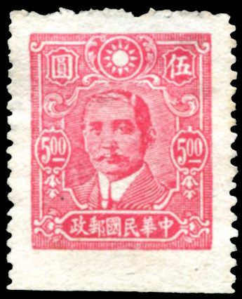 1944 百城版孙像伍圆,底部漏齿,背面轻微揭薄。