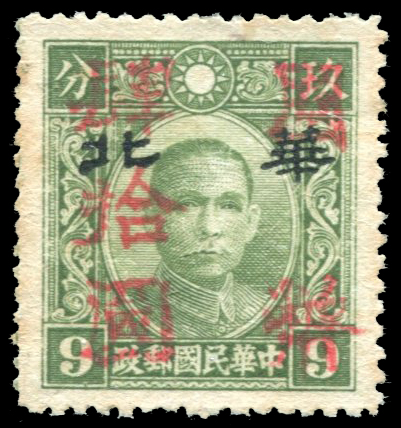 1945 胶东加盖40圆于华北孙像9分, 有黄斑.委托出价截标时间: