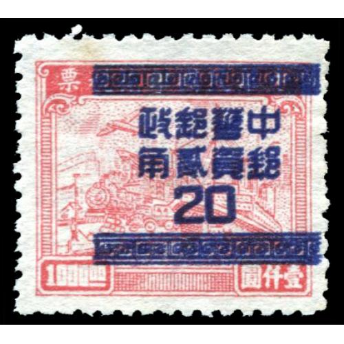 1949 印花税票1000圆加盖改作银圆20圆, 覆盖. 陈目:S12c $120.委托出价截标时间: