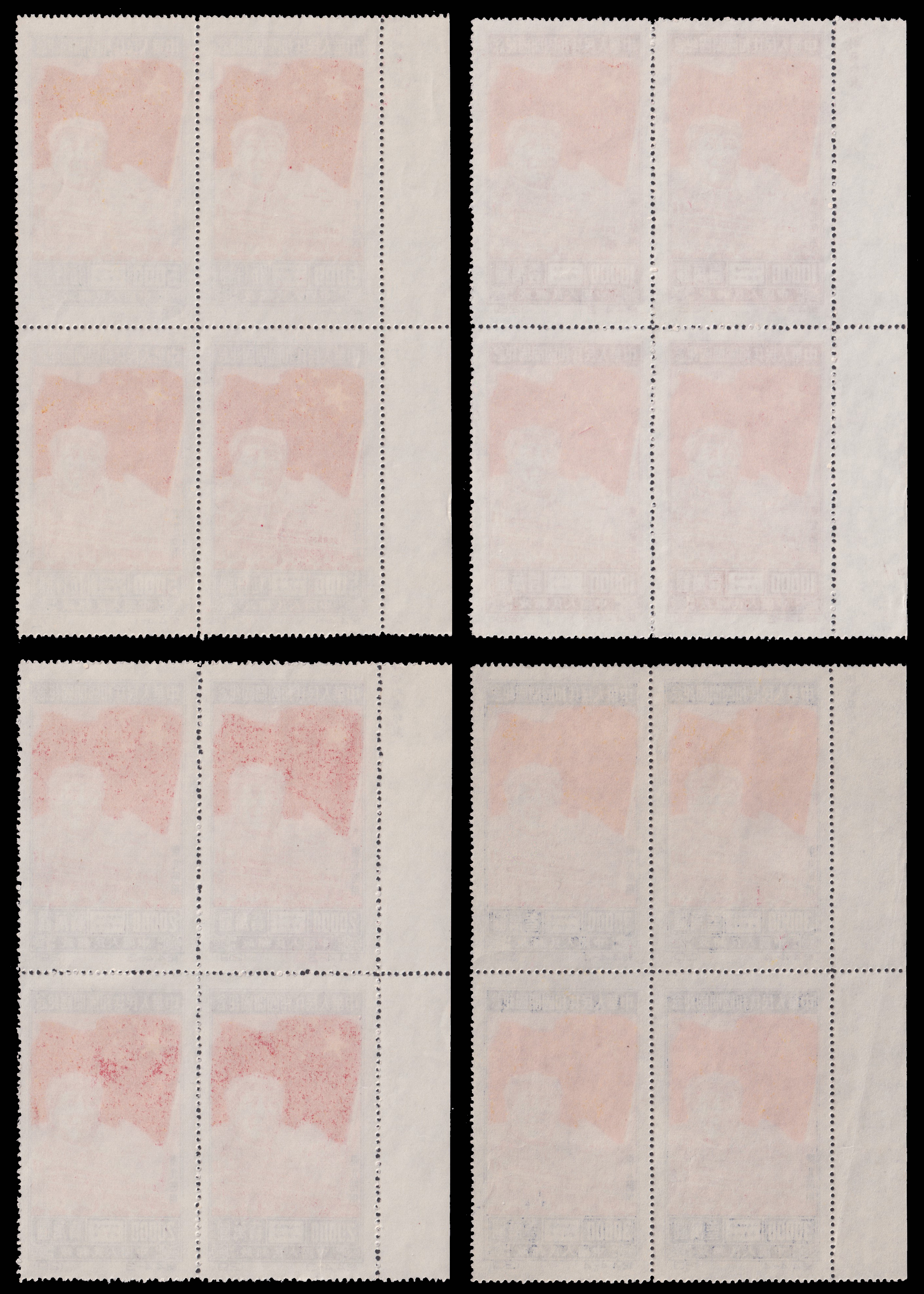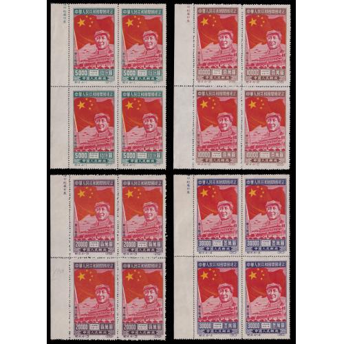 1950 North-East China 纪4东贴开国纪念4枚全新原版四方连带左边纸部分厂铭,未贴无黄. 方连少见.委托出价截标时间: