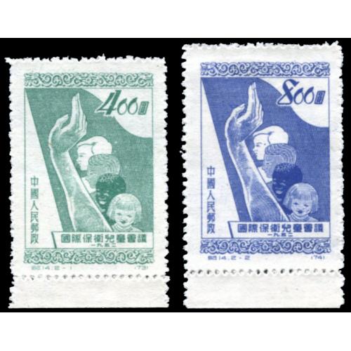 1952 纪14国际保卫儿童会议2枚全带下边纸底边齿孔14度.委托出价截标时间: