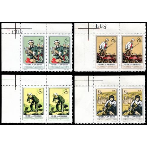 1957 特20农业合作化4枚全双连带角边纸,未贴无黄.委托出价截标时间: