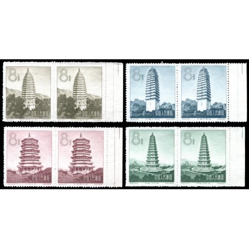 1958 特21中国古塔建筑艺术4枚全双连带右边纸,未贴无黄.委托出价截标时间: