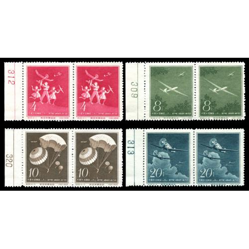 1958 特29航空体育运动4枚全带左数字边纸,未贴无黄.委托出价截标时间: