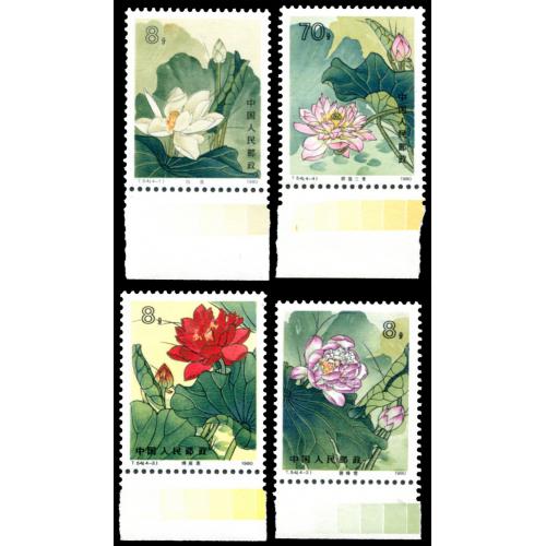 1980 T54荷花4枚全新带色标边纸.委托出价截标时间: