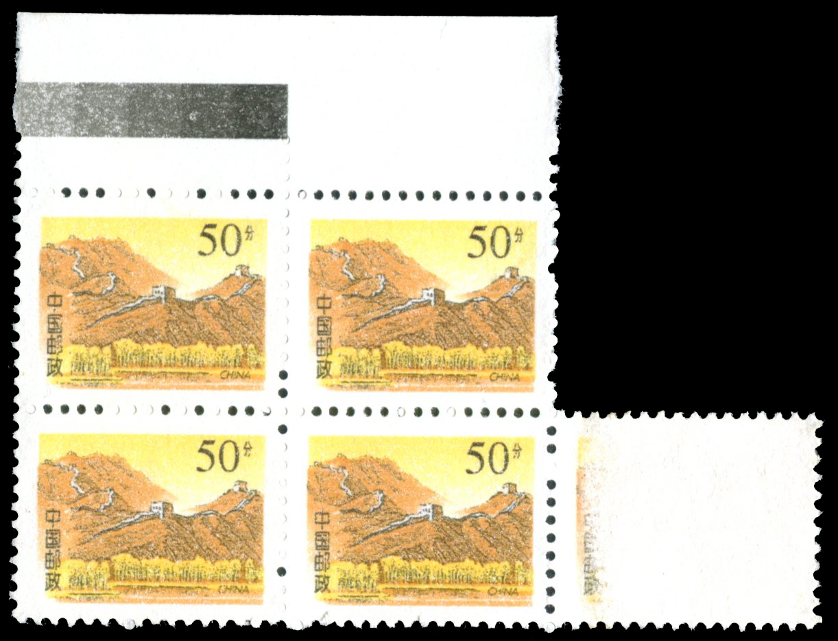 1997 长城普票50分5连, 胶面印刷.