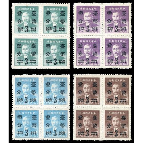 1952 臺幤加盖孙像票4枚全新4方连.