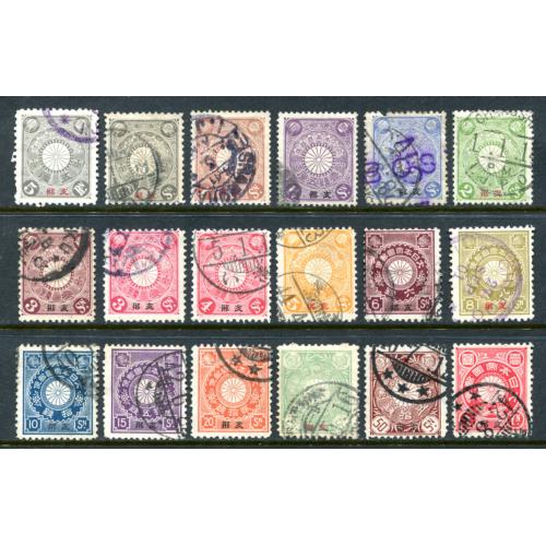 1900日本菊花票加盖"支那" 18枚全旧,其中1½s背揭薄.