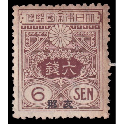 1914日本田泽型邮票6钱加盖"支那",局部泛黄.