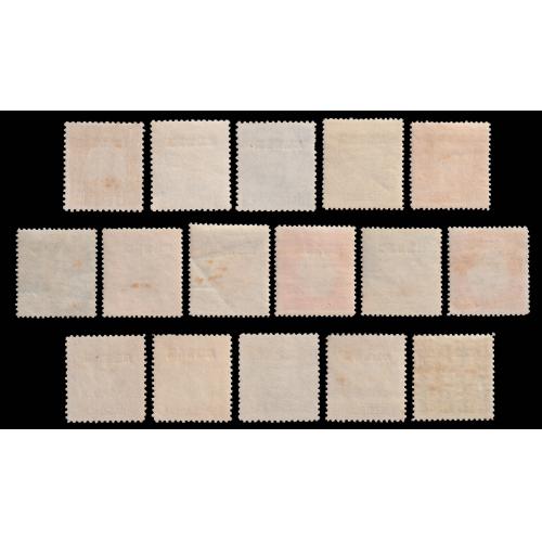 1941 伪政府加盖"限鲁省贴用"于孙像及烈士像票全套16枚全, 印备而未正式发行, 陈目3840美元. 此套票从未正式出售, 而只是作为礼物赠送给北京邮政局的高级官员.出自集邮家林松旧藏. 品相极佳.委托出价截标时间: