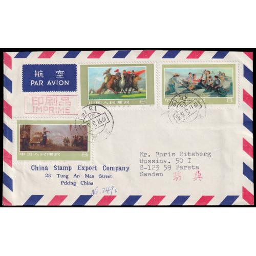 1977 T10女民兵3枚全北京总公司公文封首日航空寄瑞典, 封背加贴特37(4-3)及普14/1分,带原始函件, 保存完好.委托出价截标时间: