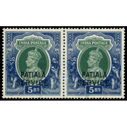1944 PATIALA Official SERVICE opt on 5R KGVI green & blue in pair, no gum.委托出价截标时间:
