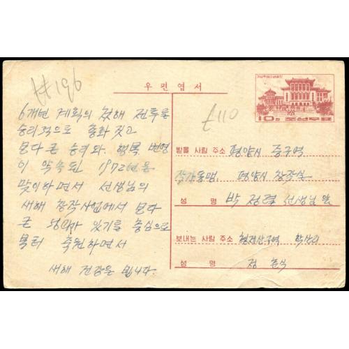Pre-stamped 10ch Building postcard with Industry design on front, used but not canlled.委托出价截标时间: