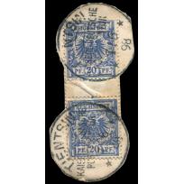1898德国邮票20芬妮两枚剪片销天津德国客邮戳.