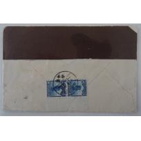 1944 年2月29日重慶挂号信寄九龙坡,背贴东川加盖五角于16分中信版孙像票及2圆中信版孙像,旁盖九龙坡3月1日到达戳。此封2圆票很可能曾今掉下来过又补贴回去,仔细看位置有差异。