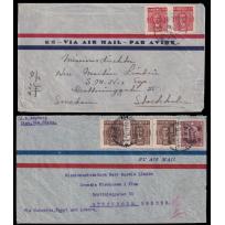 1946 年自西安及哈扬寄瑞典航空信封两枚,贴孙像票.