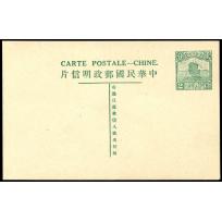 1931 第八版帆船邮资片2分绿未实寄,底部有些许小损及黄斑.