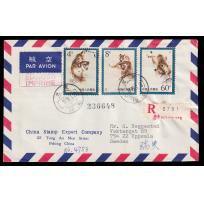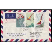 1980 T44(16-1,16-2,16-14)北京总公司公文封首日航空挂号寄瑞典, 加贴特60(3-3).带原始函件.