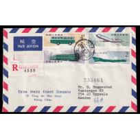 1980 邮政运输4枚全北京总公司公文封首日航空挂号寄瑞典, 封背加贴T44(16-2),T48(4-4)及普16/52分.