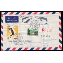 1980 白暨豚2枚全北京总公司公文封首日航空挂号寄瑞典, 加贴J62(5-4)及普14/22分.