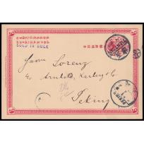 1903 年8月 格拉夫·瓦德西在塘沽明信片, 由河北顺德府寄摩洛哥, 贴蟠龙1分双连及2分销顺德府碑型戳, 经北京盖2?AUG1903椭圆戳, 上海及法国在华28AUG03中转, 经香港盖VICT...