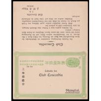 1930 第七版帆船邮资片2分绿, 上海寄日本销中英文双语戳.