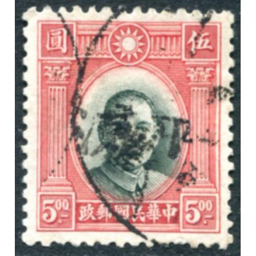 1931 Dr. Sen Yat-sen 1st London print $5 used with Pingliang Anti-bandit chop.