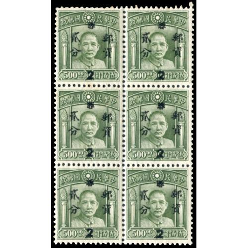 1949 Szechwan Silver Yuan surch. 2c on $500 SYS 4th London print block of 6 with original gum never hinged. VFThe deadline for pre-auction bidding for lot no. 1-558:10:00 CET on March 7. 2026, the online live/floor auction will start at 10:30 CET.