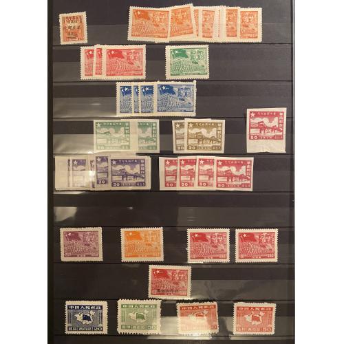 5 visor leaves with stamps from different Liberated Areas, most of regular issues, nothing expensive, total 270 stamps.