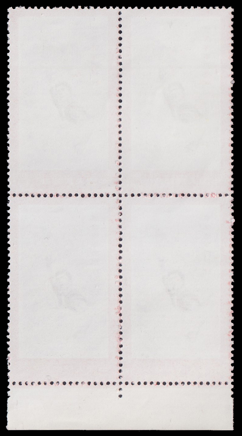 1970 Heoric Death of Jin Xunhua Red and black block of 4 with bottom margin.