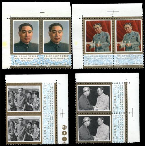 1977 1st Anniv. of Death of Chou En-lai, Zhu De and Mao Zedong sets in pairs with corner margins never hinged. VF