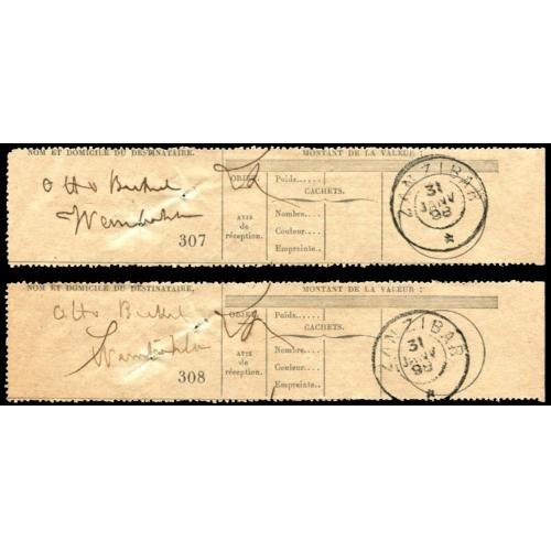 ZANZIBAR 1898 Two registration receipts with ZANZIBAR post marking, additional a handwritten letter from Otto Bickel ordering stamps from Zanziba...