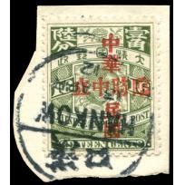 1912 Republic overprint on 3c blue-green Coiling Dragon with overprint inverted variety.