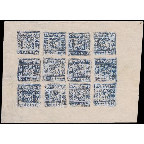 Accumulation of 19 unused and two cto full sheets of Tibet local Lion issues, incl. some scarce settings, also 8 domesticlly used covers. Many it...