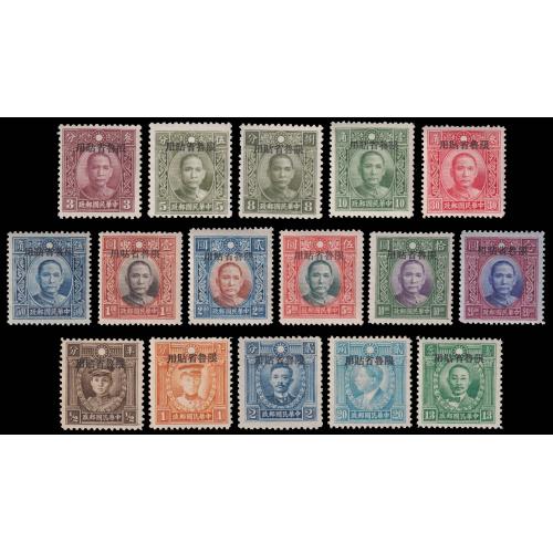 1941 伪政府加盖"限鲁省贴用"于孙像及烈士像票全套16枚全, 印备而未正式发行, 陈目3840美元. 此套票从未正式出售, 而只是...