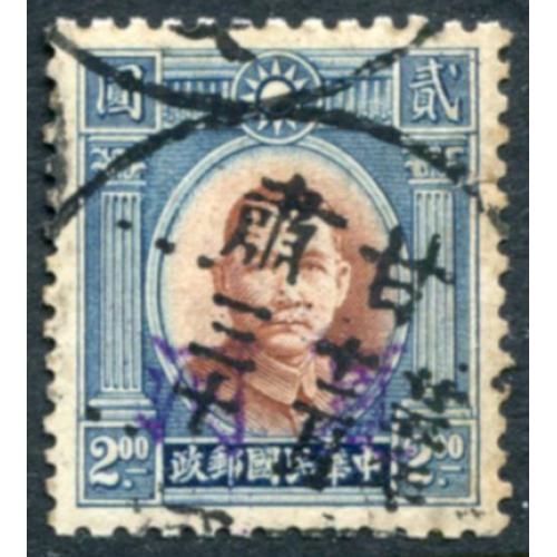 1931 2nd London print Dr Sen Yat-sen Wide type $2 used with Xiahe Anti-bandit chop.