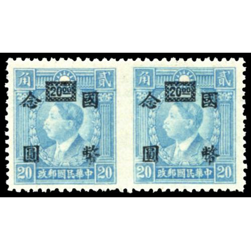 1945 CNC surch. $20 on 20c Martyr in pair with imperforation between variety. Chan:901d.The deadline for pre-auction bidding for lot no. 1-558:10:00 CET on March 7. 2026, the online live/floor auction will start at 10:30 CET.