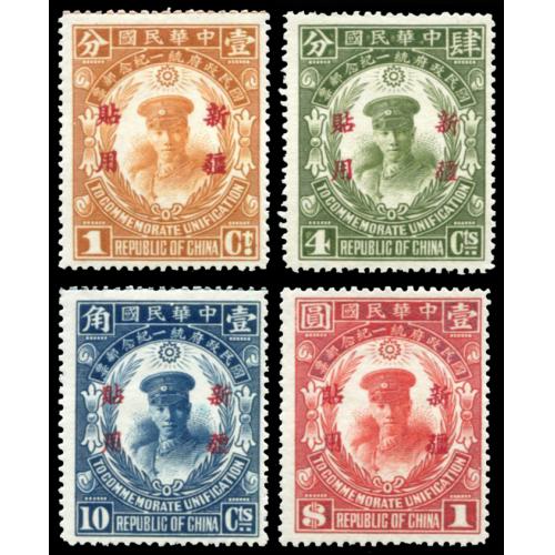1929 Sinkiang Unification of China opt with "For Sinkiang Use" set, $1 only 51000 issued.
