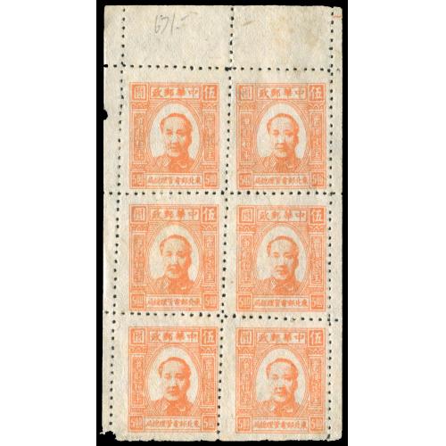 1946 North-East China First print Chairman Mao $5 booklet pane of 6.