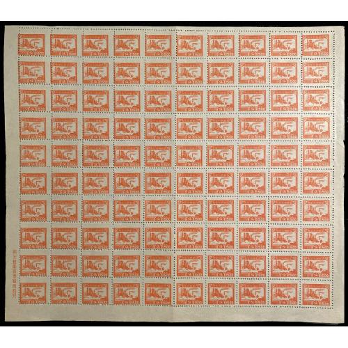 1949 North-East China Factory $1500 full sheet of 100, 4 positions with long chimney-stack varieties. Folded once, with perforation misplaced varieties at left half of sheet.The deadline for pre-auction bidding for lot no. 1-558:10:00 CET on March 7. 2026, the online live/floor auction will start at 10:30 CET.