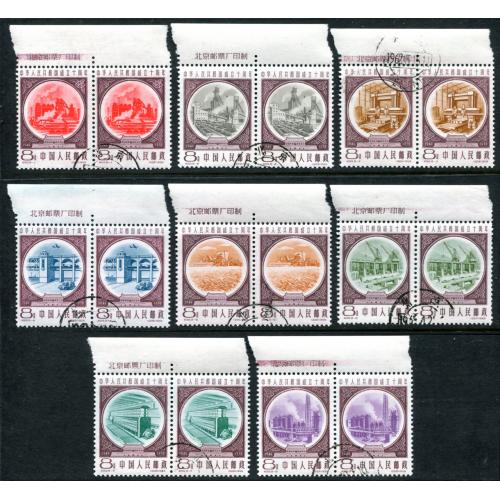 1959 10th Anniv. of PRC. 3rd issue set cto in pairs with imprint margin never hinged. VF