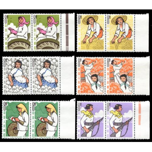 1964 Women of Peoples Commune set in pairs with right margin never hinged. VF