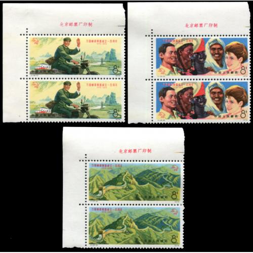 1974 Universal Postal Union set in pairs with imprint corner margins never hinged, folded through left perforation VF