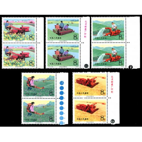 1975 Farm Mechanization set in pairs with right margin never hinged. VF
