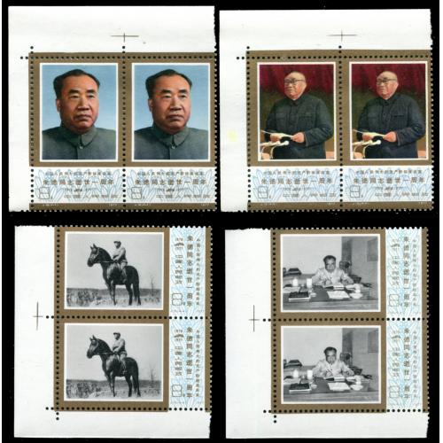 1977 1st Anniv. of Death of Chou En-lai, Zhu De and Mao Zedong sets in pairs with corner margins never hinged. VF