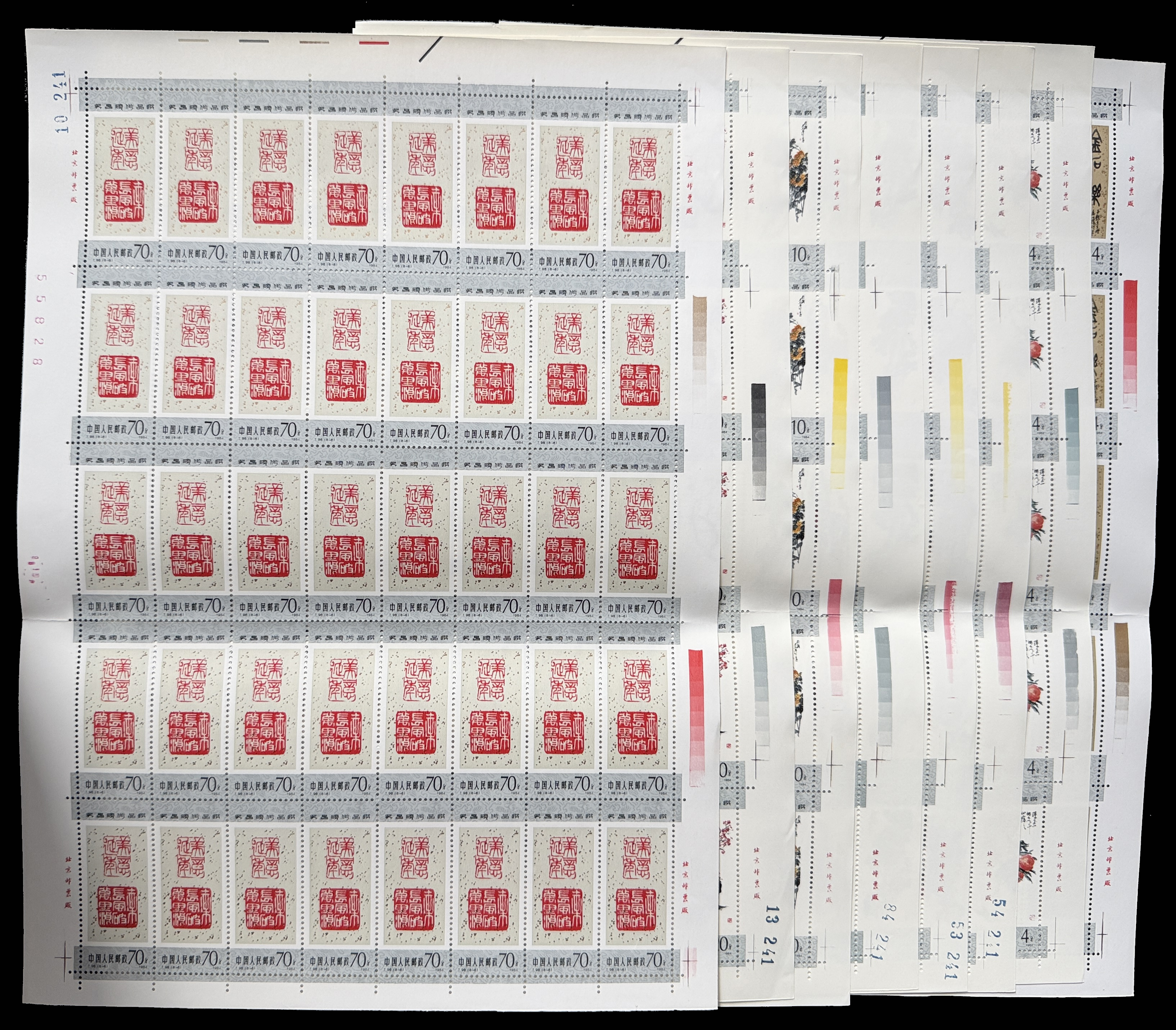 1984 Paintings of Wu Chang-shuo set in full sheets of 40, folded once.The deadline for pre-auction bidding for lot no. 1-558:10:00 CET on March 7. 2026, the online live/floor auction will start at 10:30 CET.