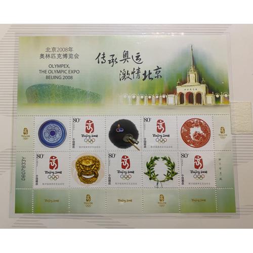 2008 Olympex, The Olympic Expo Beijing 2008 Stamp Album incl. all the 5 different special issued MS for the Five Theme Days (Only 100000 issued ...
