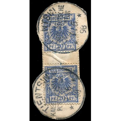 1898 German P.O. German stamp 20PF x 2 used on piece with German Tientsin Postoffice cds.The deadline for pre-auction bidding for lot no. 1-558:10:00 CET on March 7. 2026, the online live/floor auction will start at 10:30 CET.