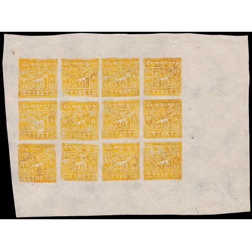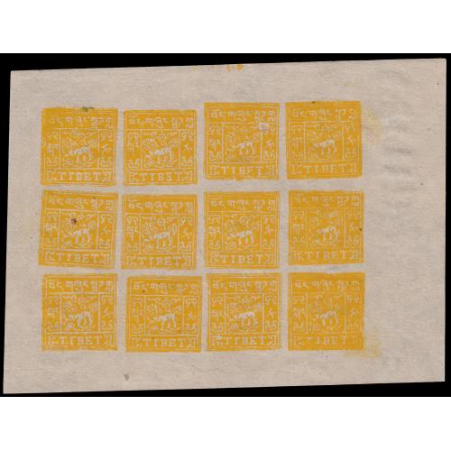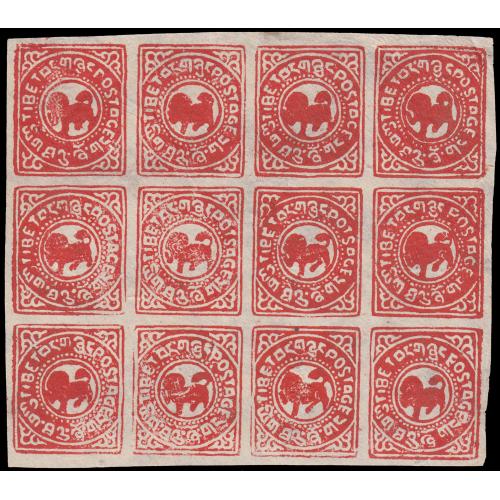 Accumulation of 19 unused and two cto full sheets of Tibet local Lion issues, incl. some scarce settings, also 8 domesticlly used covers. Many it...