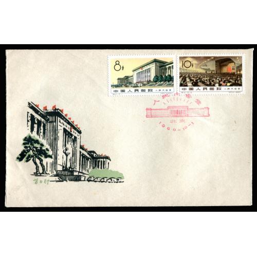 1960 Great Hall set on FDC issued by China Philatelic Company, unaddressed.